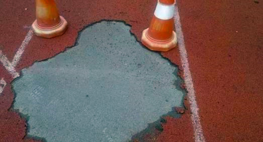 比如人们在使用的过程中使用不当造成外部破坏,如重压、利器损伤、烟蒂焚烧等让塑胶跑道的局部地方出现损坏。
