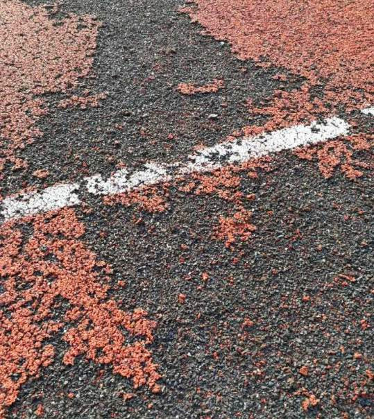 像是以上的这些就需要翻新修补,塑胶跑道翻新修补大概有以下几点步骤: