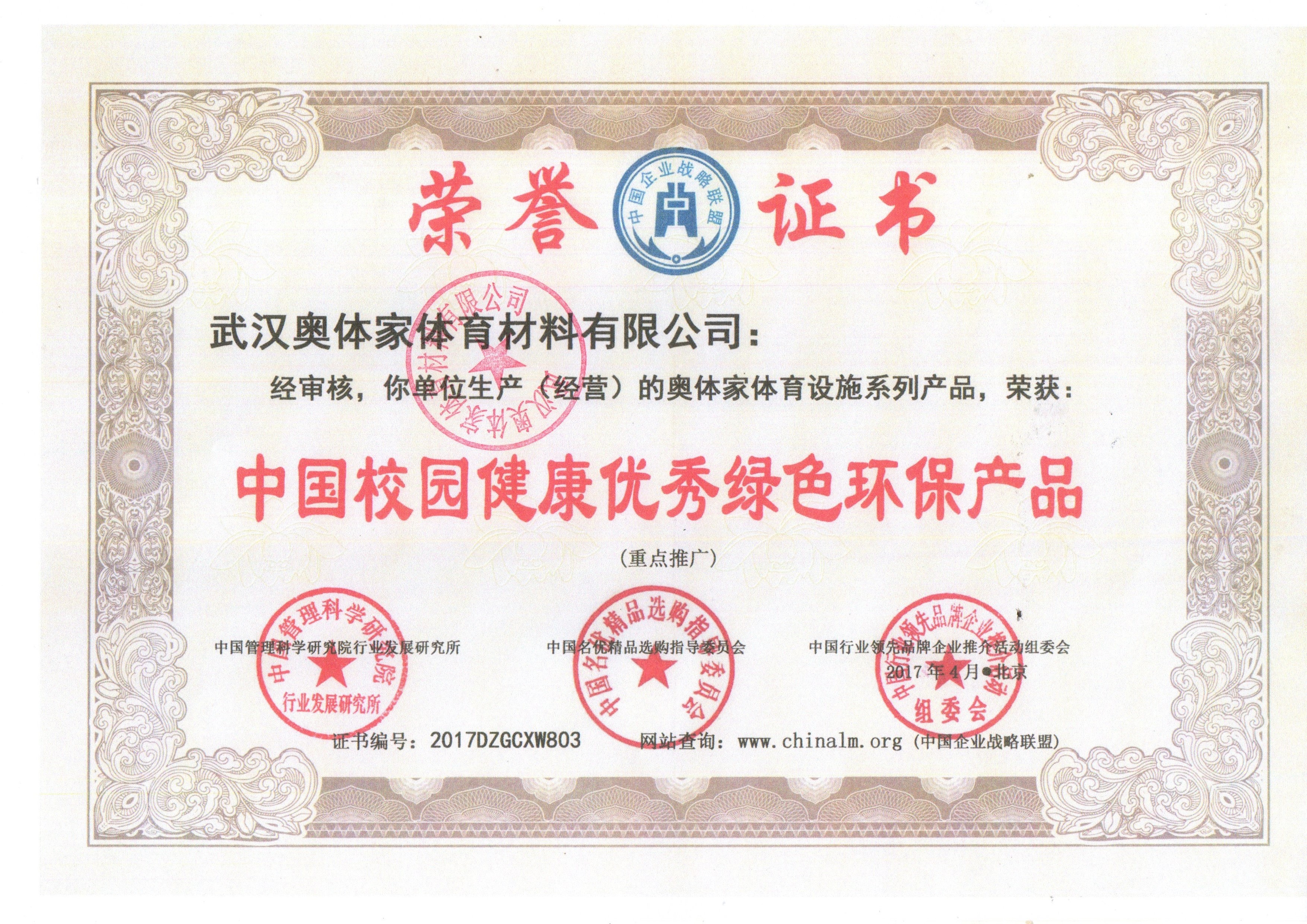 奥体家荣获中国校园健康优秀绿色环保产品