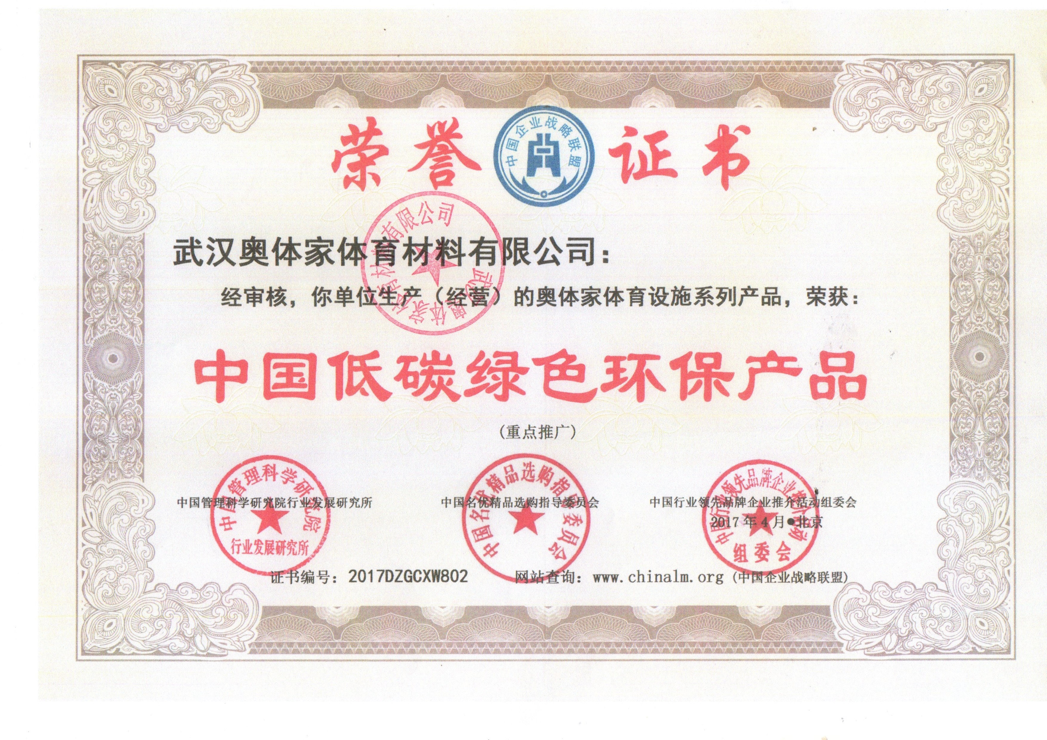 奥体家荣获中国低碳绿色环保产品