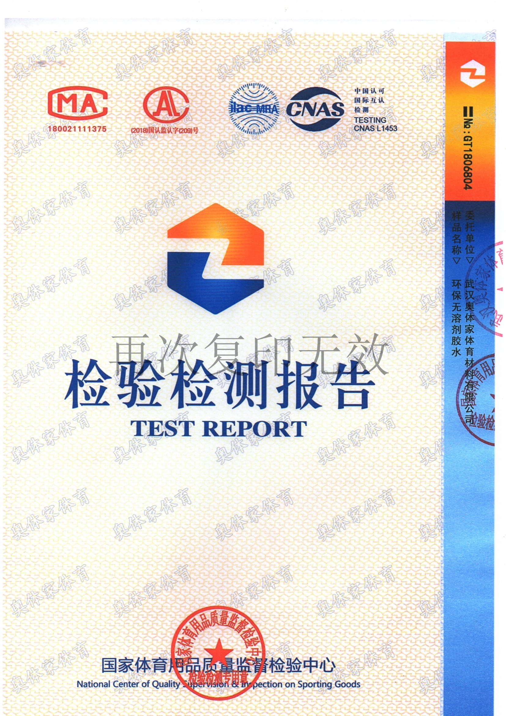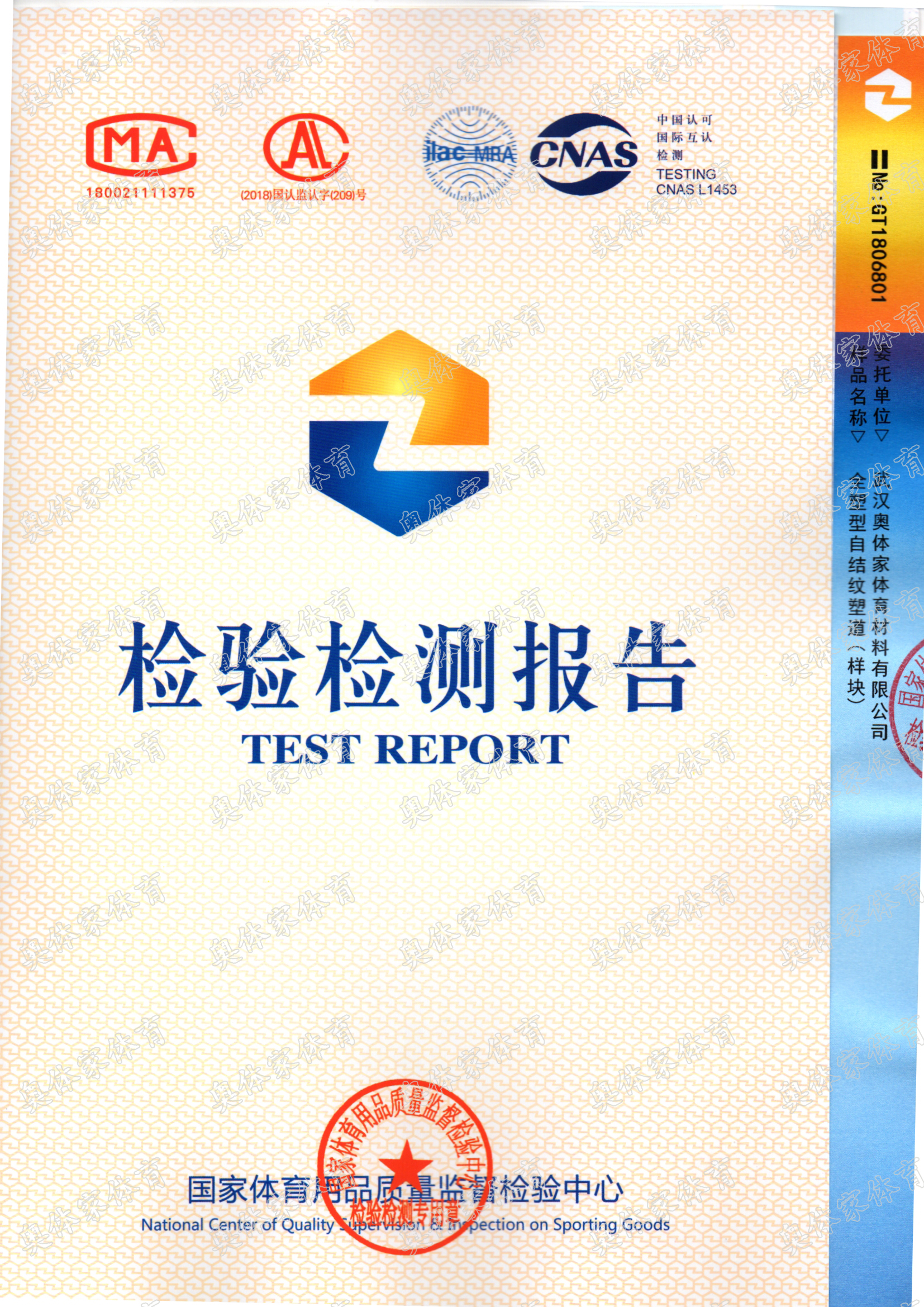 j9国际站官网入口新国标全塑型自结纹塑胶跑道检测报告