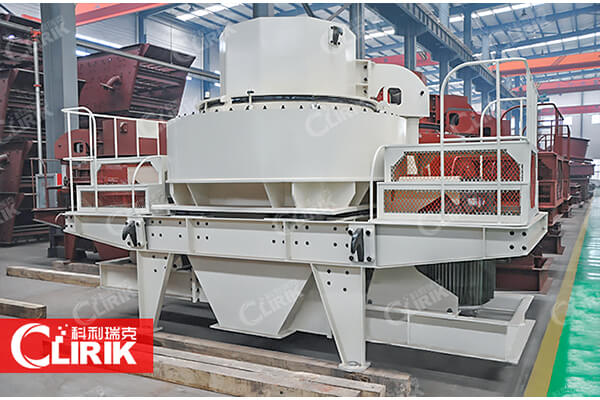 物料由进料斗进入制砂机,经分料器将物料分成两部分,一部分由分料器中间进入高速旋转的叶轮中,在叶轮内被迅速加速,其加速度可达数百倍重力加速度,然后以60-70米/秒的速度从叶轮三个均布的流道内抛射出去,首先同由分料器四周自收落下的一部分物料冲击破碎,然后一起冲击到涡支腔内物料衬层上,被物料衬层反弹,斜向上冲击到涡动腔的顶部,又改变其运动方向,偏转向下运动,从叶轮流道发射出来的物料形成连续的物料幕。这样一块物料在涡动破碎腔内受到两次以至多次机率撞击、磨擦和研磨破碎作用。被破碎的物料由下部排料口排出。在整下破碎过程中,物料相互自行冲击破碎,不与金属元件直接接触,而是与物料衬层发生冲击、摩擦而粉碎,这就减少了角污染,延长机械磨损时间。涡动腔内部巧妙的气流自循环,消除了粉尘污染。